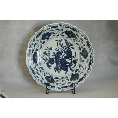 Blue and white lotus shape side of porcelain charger. Xuan-De mark. good condition.