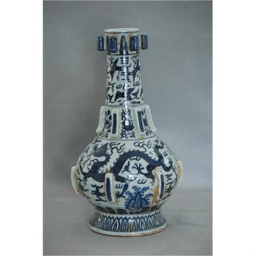 Blue and white porcelain vase with mark.decor with blue dragon as design.