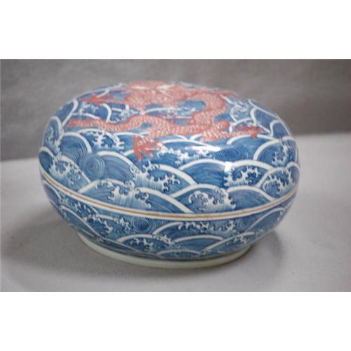 <tr><td>Title:Blue and white with red dragon of </td></tr>