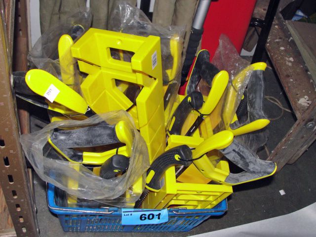 Blue basket filled with miter boxes and saw combos