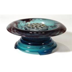 Blue cloud glass bowl on stand with rose, …