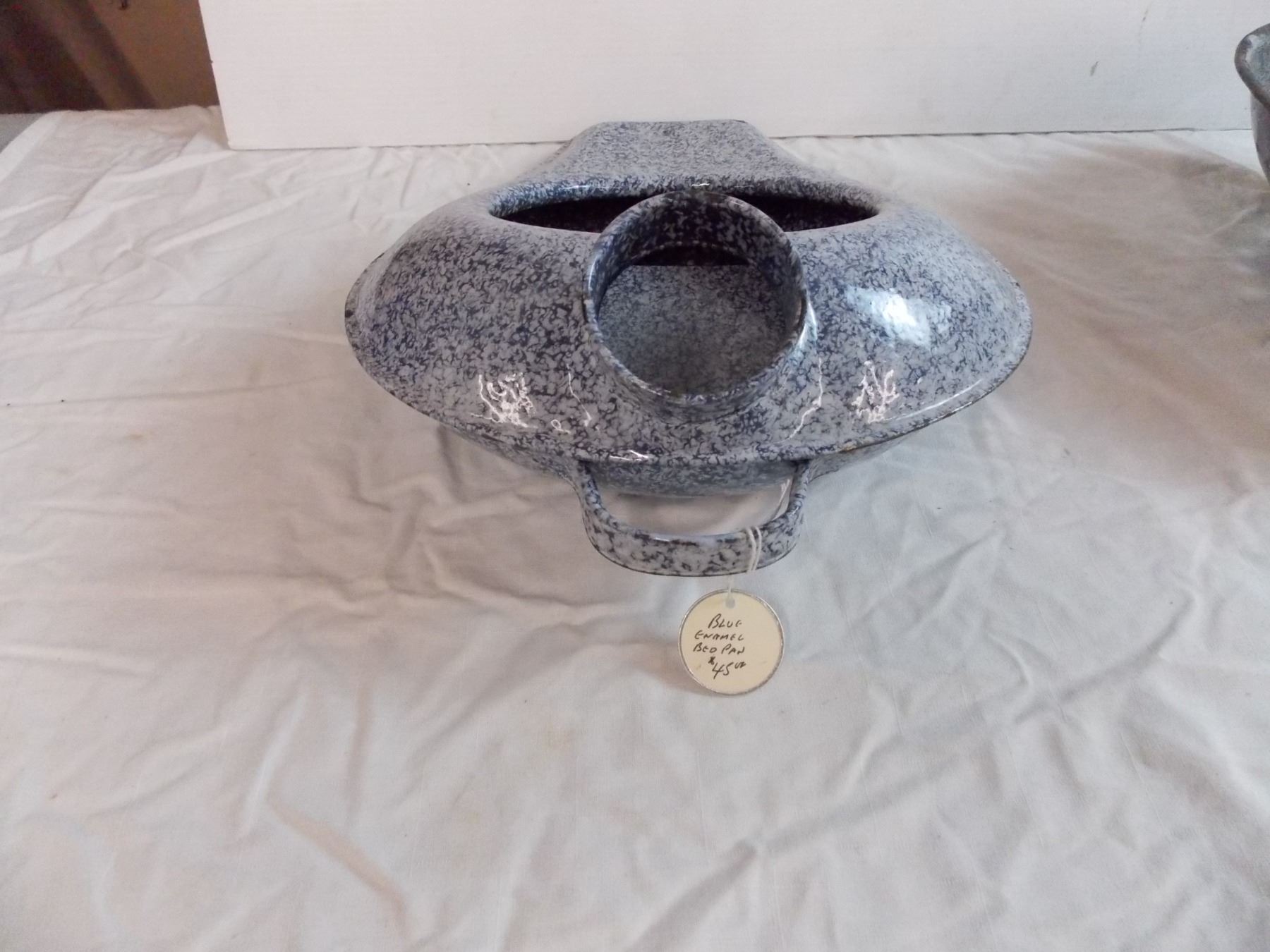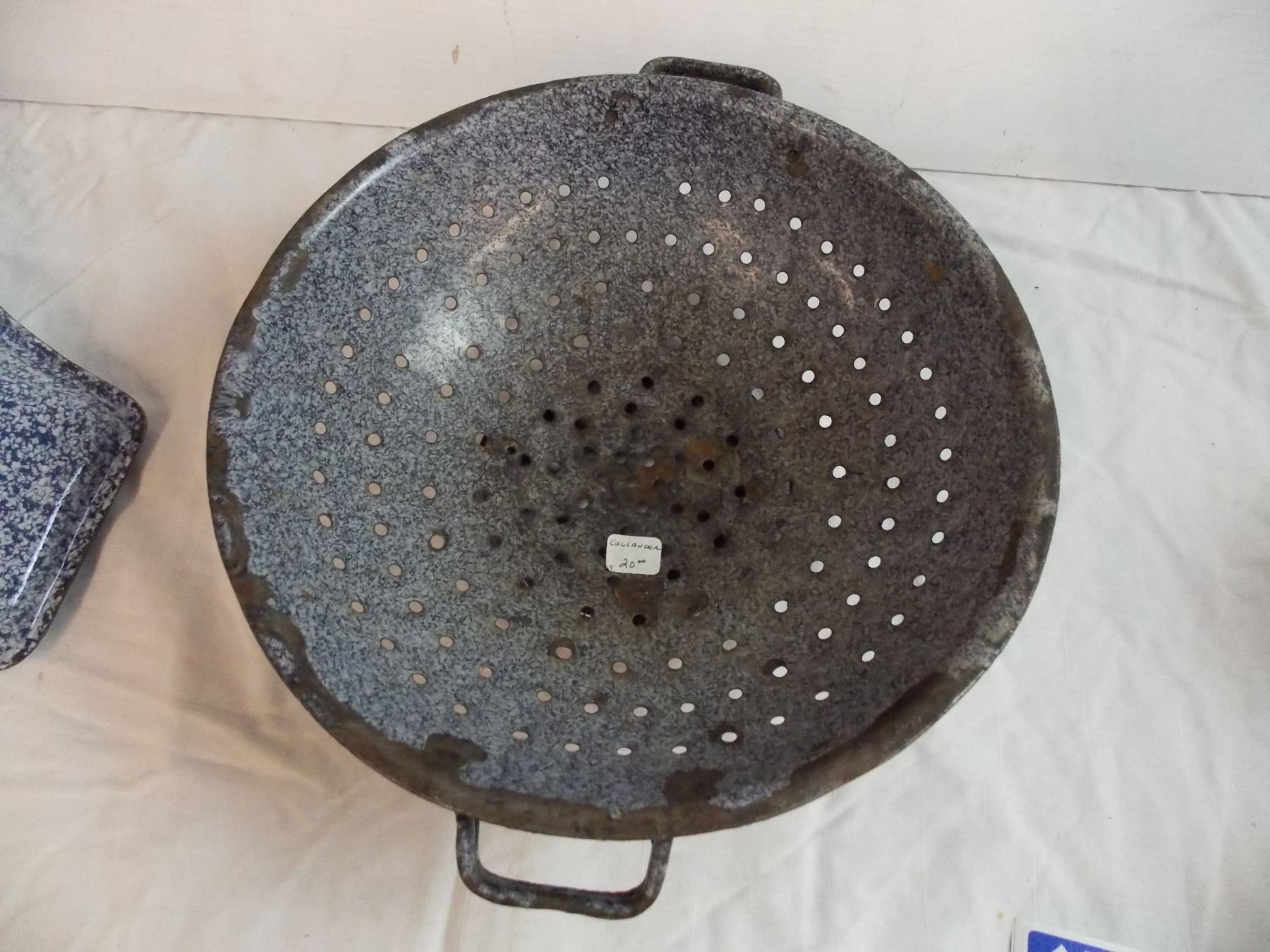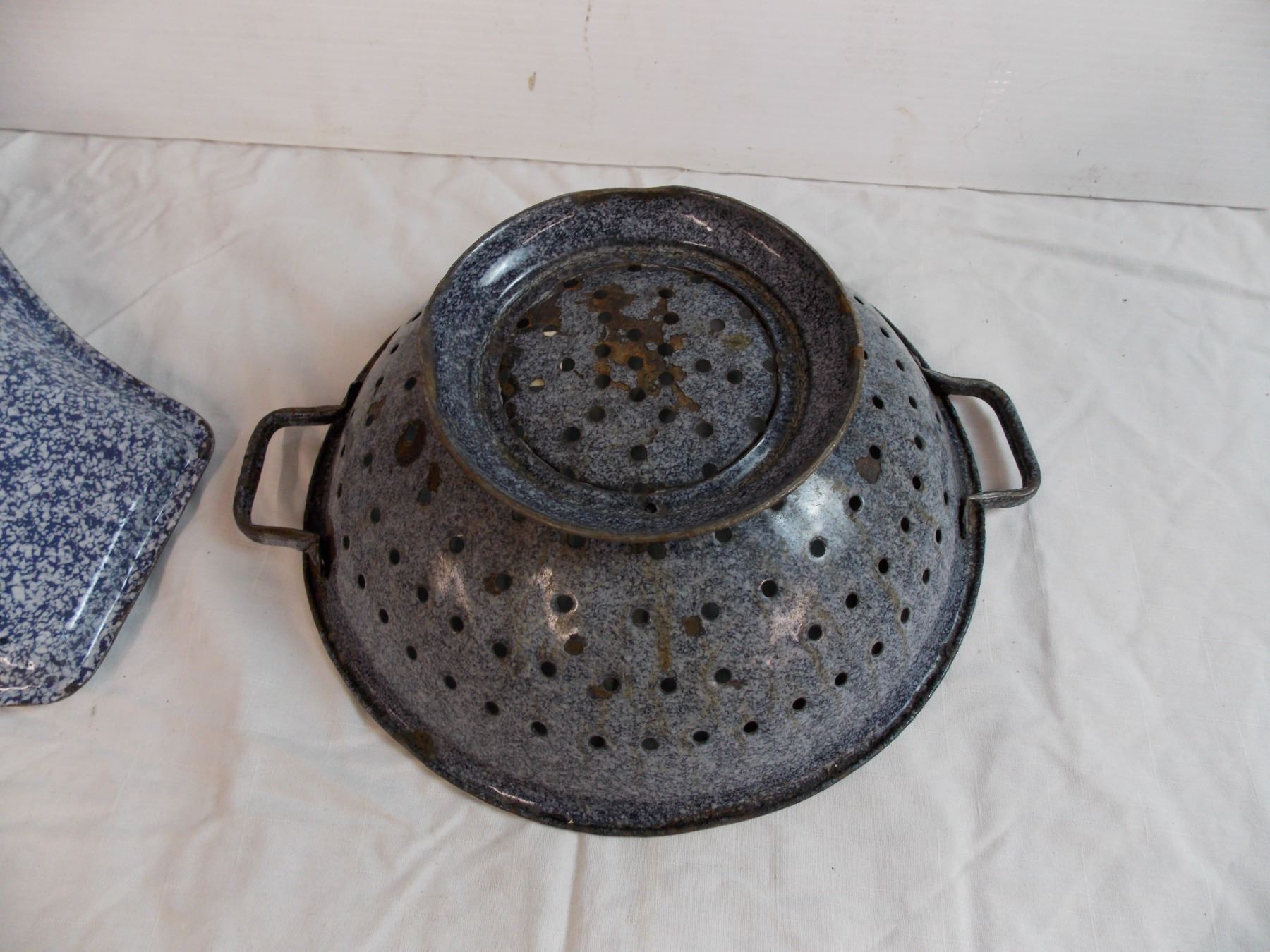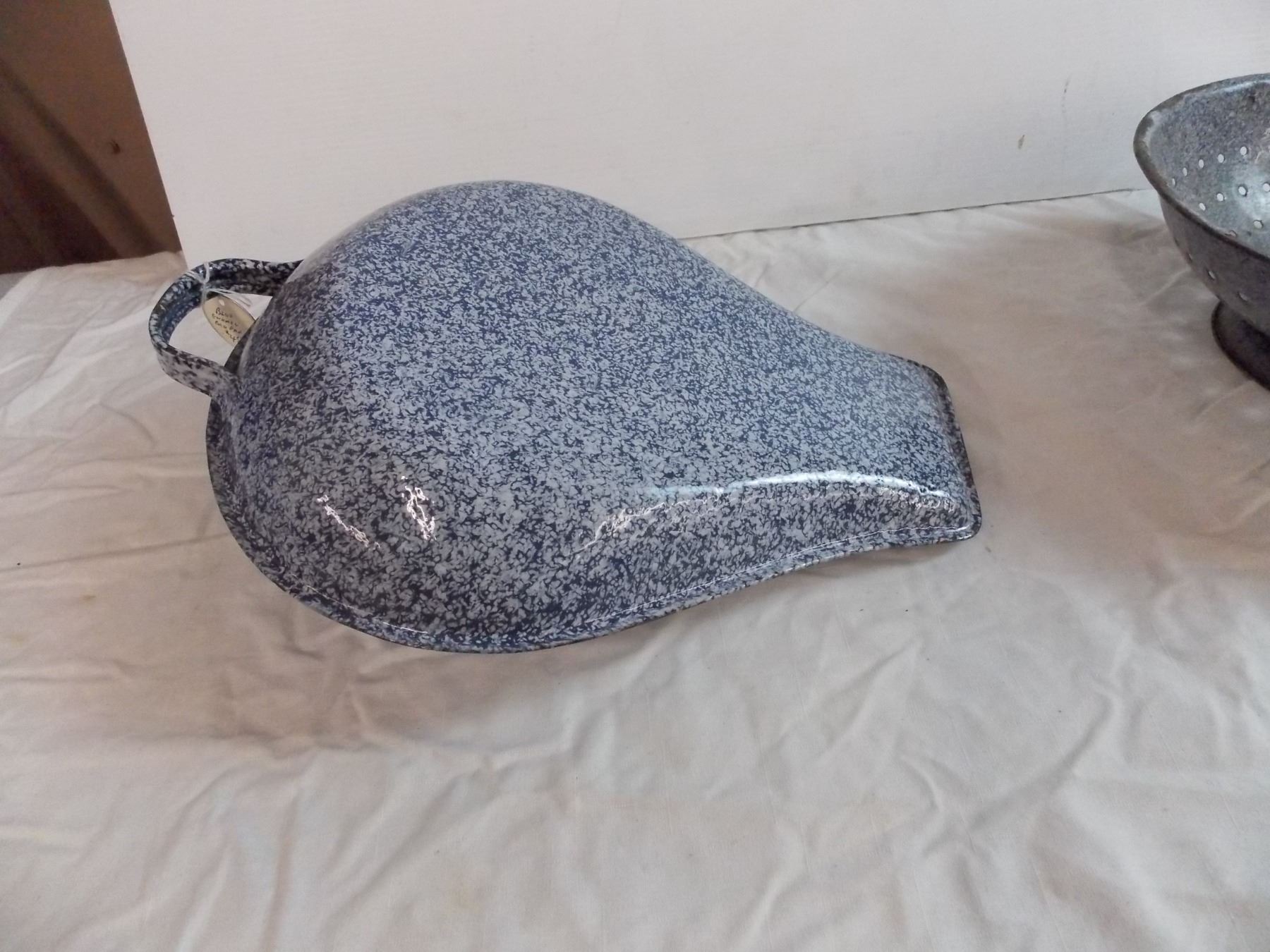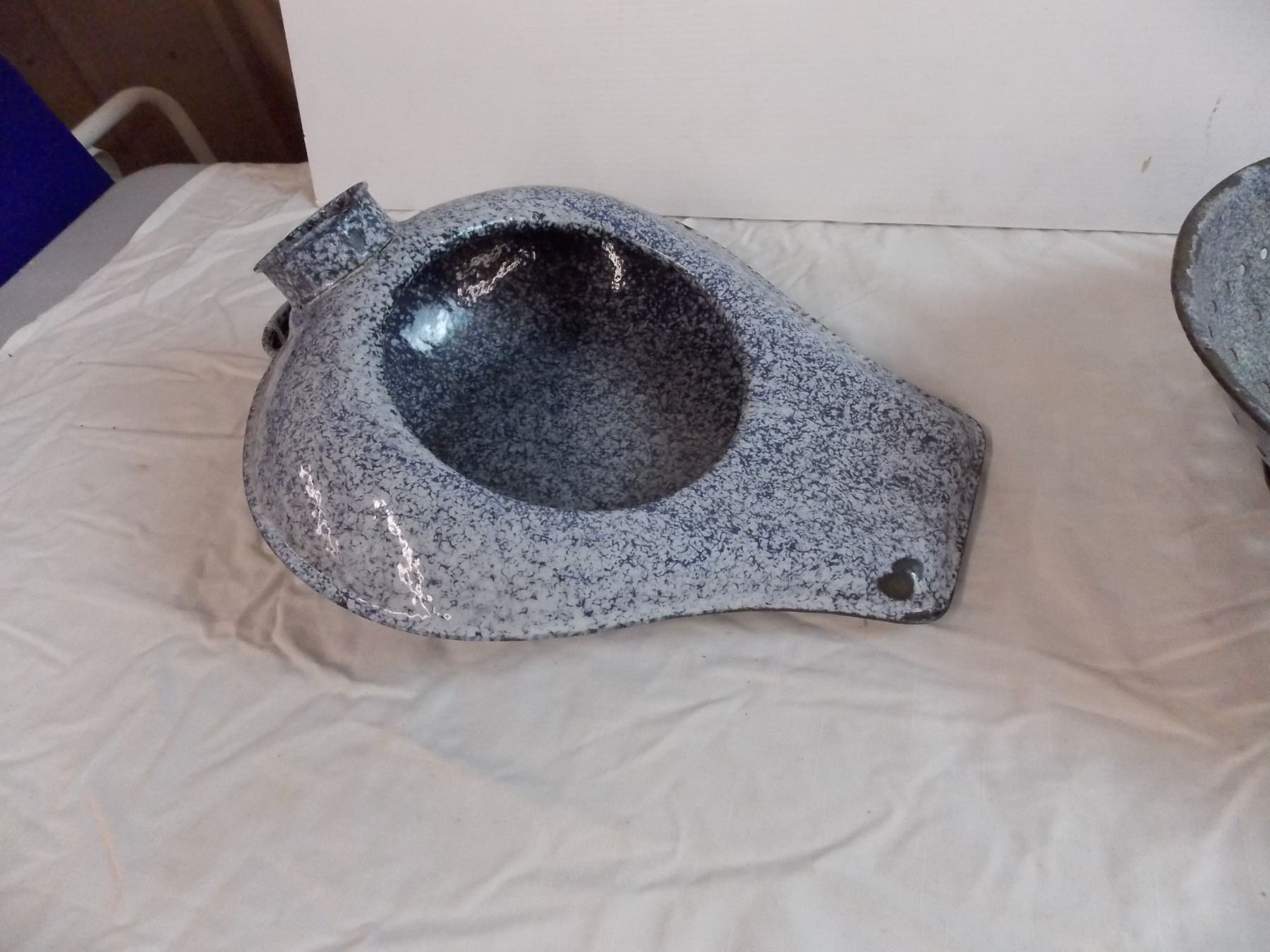 Blue enamel Bedpan + Collander