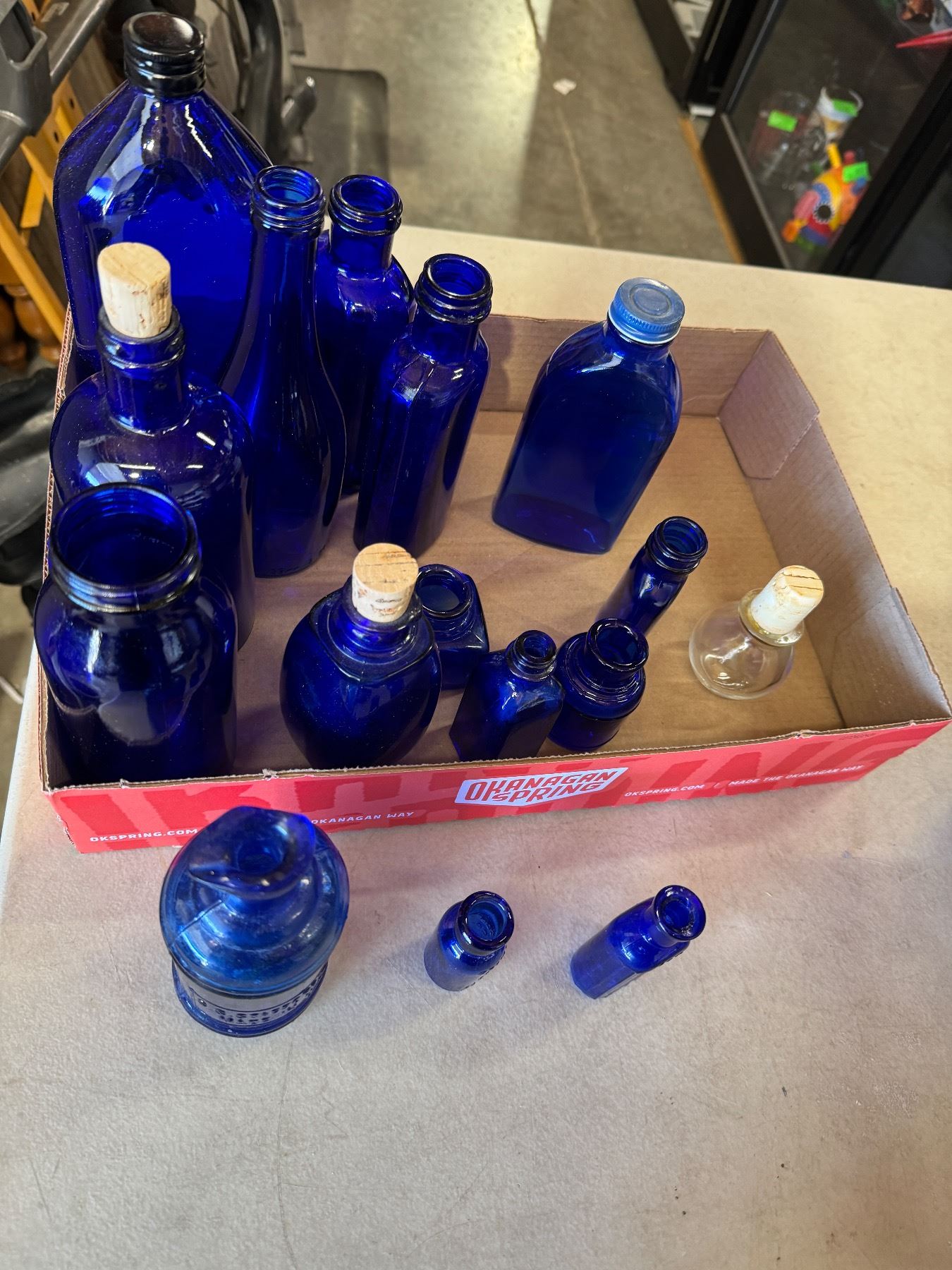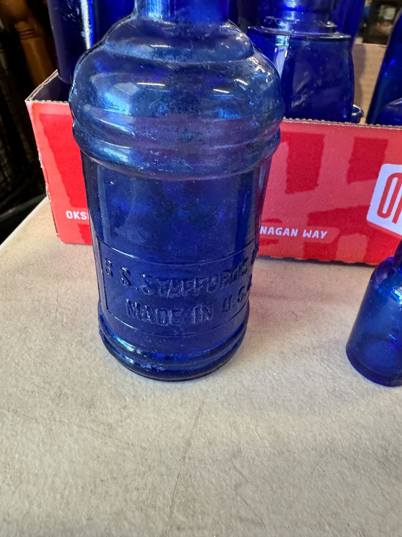 Blue glass bottles