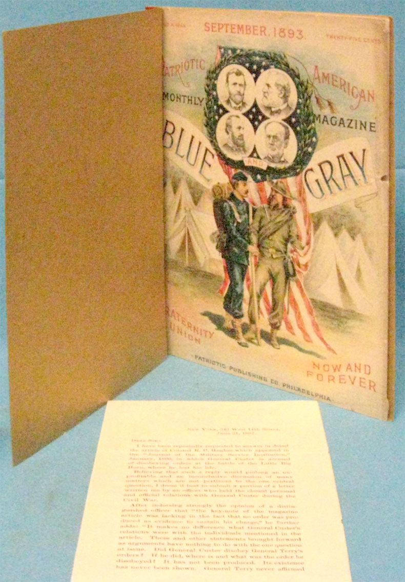Wonderland Publication, September 1893 and January 1894 with advertisements for The Tragedy of the Little Big Horn, scarce; and General Custer at the Battle of the Little Big Horn by Elizabeth Custer, June 25, 1876. N.Y., 1897. An original 3 pp. defense of Custer by his wife Elizabeth against charges that he disobeyed the orders of General Terry, very rare.