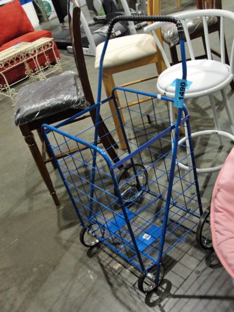 Blue metal folding grocery cart