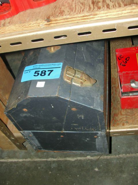 Blue metal toolbox and contents