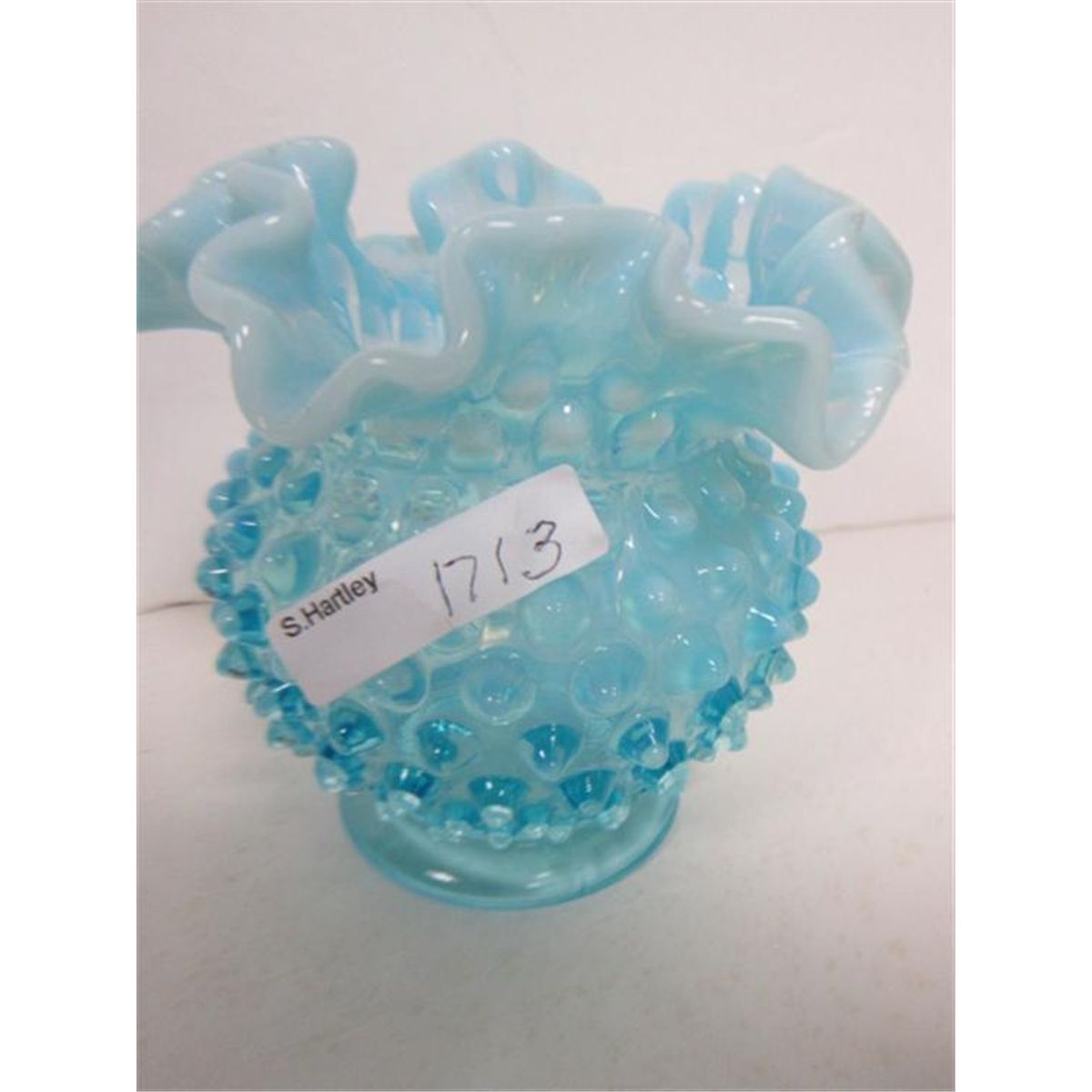 Blue opalescent hobnail ruffled top vase-4 1/4"-unmarked