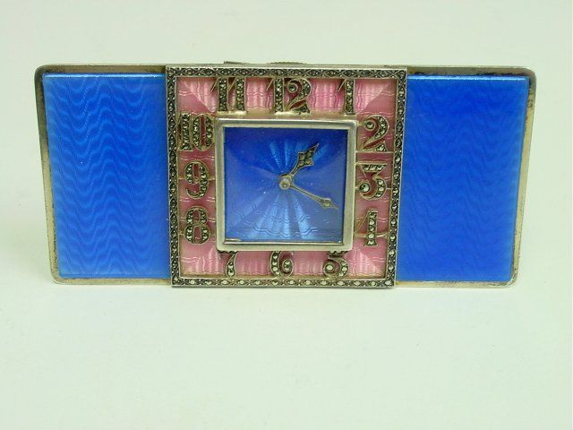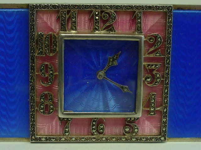 With rhinestone numbers & clock hands. Approx. 4.25" W x 2" H. Please read our terms of sale.