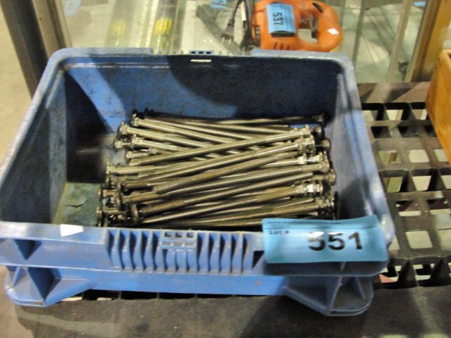 Blue plastic storage bin filled with anchor bolts