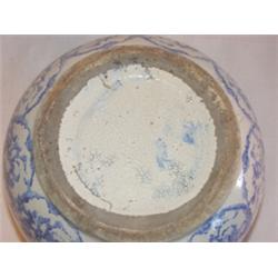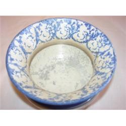 Blue spongeware spittoon. Measures 5" tall and has a dia. of 7 1/2".