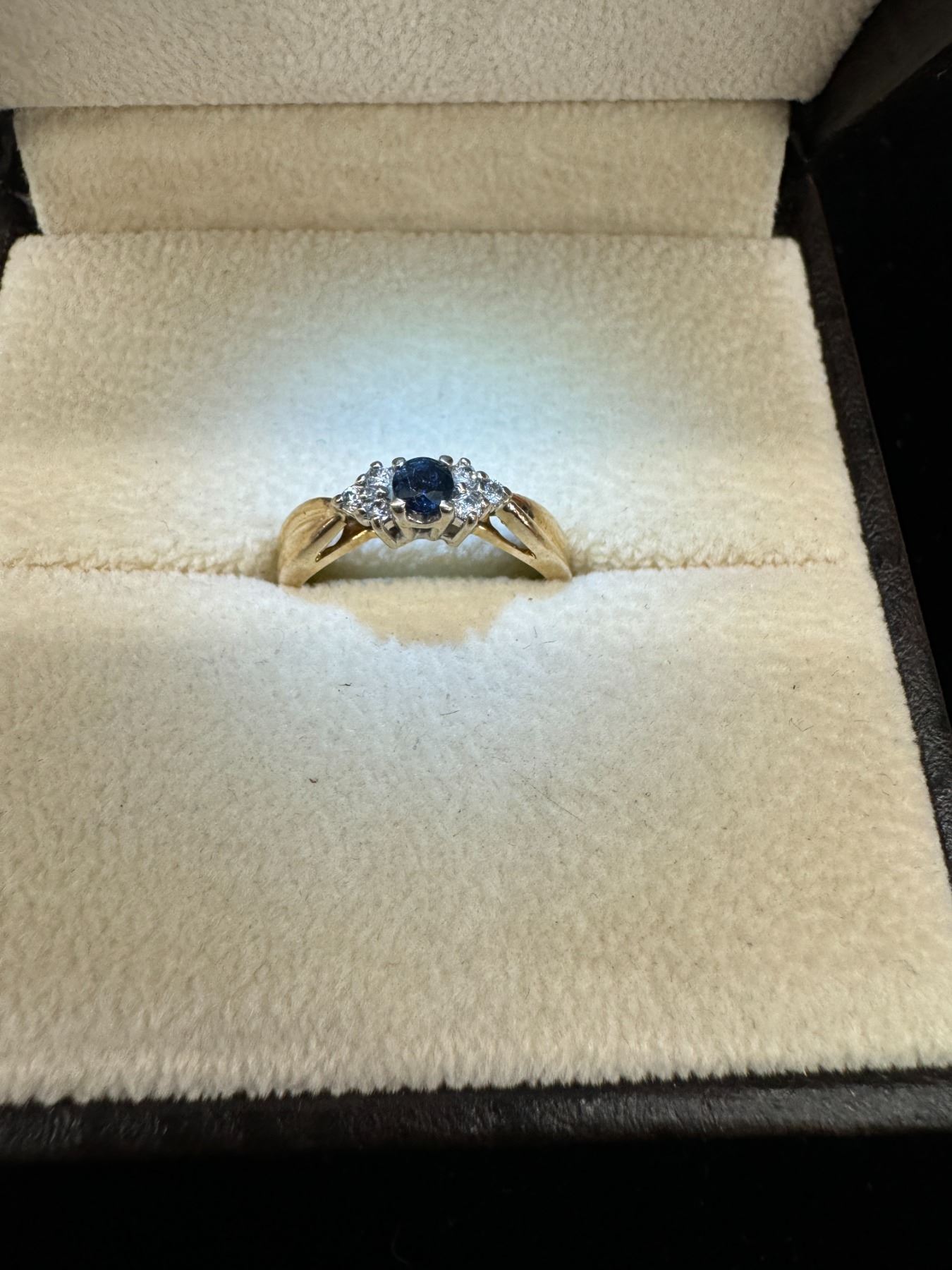 Blue stone side flowers ring 14k 2.7g