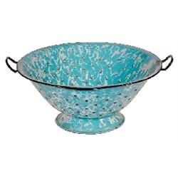 Blue & white granite ware colander, some damage on interior rim, otherwise Exc. condition, 10.5"Dia.