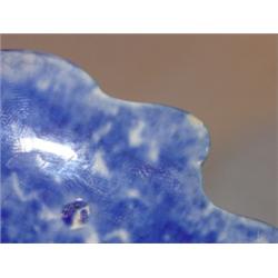Blue & white spongeware butter dish base. Measures 8 1/2" x 8 1/4" and has one small chip.