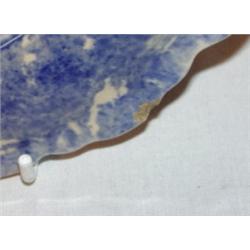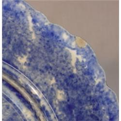 Blue & white spongeware plate. Measures 10 1/2" x 10" and has 3 chips and a 1" factory line.