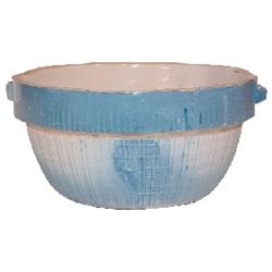 Blue & white stoneware milk crock, Daisy & Trellis pattern, incised star in bottom, Exc. condition, no handle, 10"Dia.