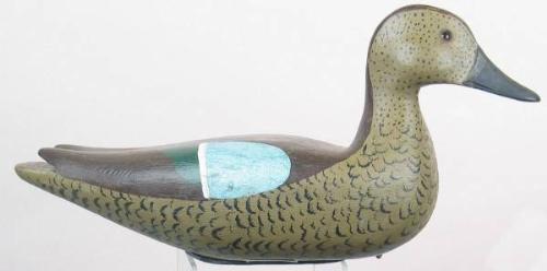 Blue wing teal decoy with split wings, alert posture and XOP by an unknown Louisiana maker. (decoy)