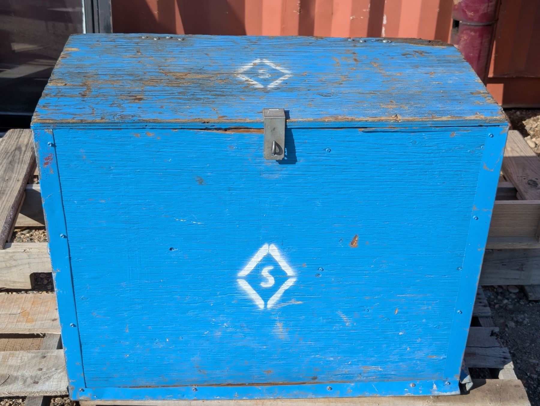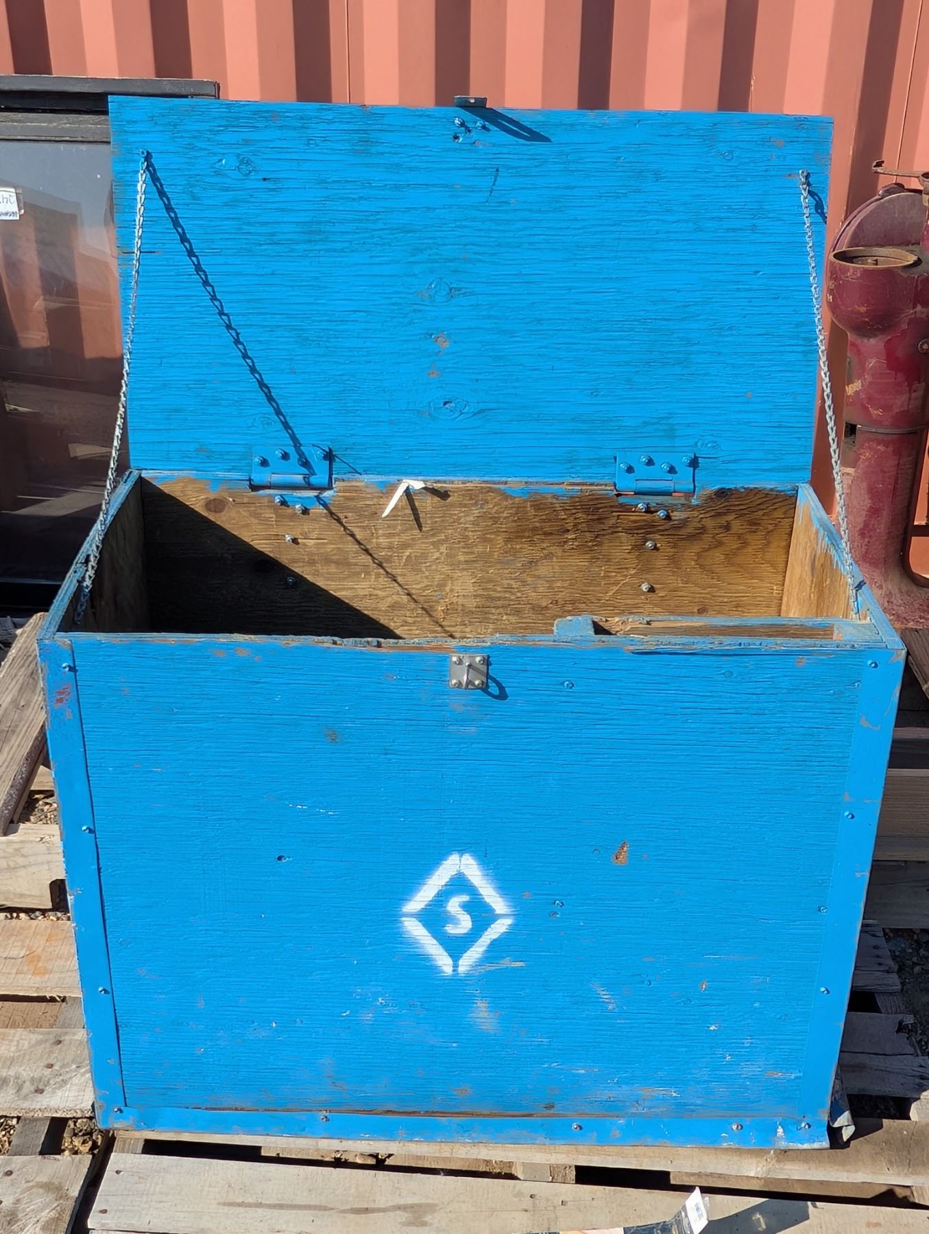 Blue wooden Chest Box (27"x34"x18") w/ Rolled Groove Ridge Tool (Dimensions As Shown)