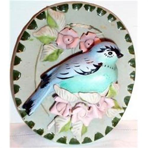 This wonderful Porcelain BlueBird Plate is quie sweet with the bird sitting in some pink roses. The plaque is in SUPERIOR condition with no chips, cracks, or dings and it measures 4.50" wide and is 5.125" long. It is unmarked and I am sorry to say I don't know the maker.