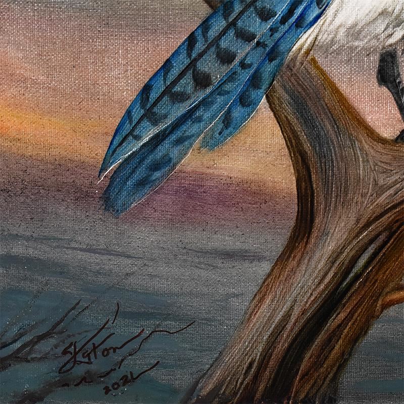 Bluejay Couple By Katon Original. "Bluejay Couple" is an original oil painting on stretched canvas by Martin Katon, hand signed by the artist. Includes Letter of Authenticity. Measures approx. 20" x 24" (image).