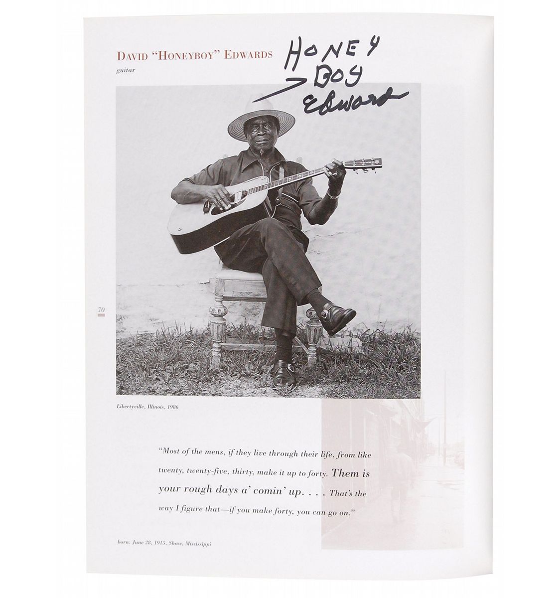 Signed book: The Blues is a Feeling. First hardcover edition. Mount Horeb, Wisconsin: Face to Face Books, 1998. Hardcover with dust jacket, 9 x 11.25, 160 pages. Signed throughout in felt tip by author James Fraher; Pinetop Perkins; Honeyboy Edwards; Clarence ‘Gatemouth’ Brown; R. L. Burnside; Robert Lockwood, Jr.; George ‘Mojo’ Buford; Donald and Kenneth Kinsey; Jimmy Johnson; Lil Ed; Magic Slim; Big Jack Johnson; Eddie ‘The Chief’ Clearwater; and Eddie Shaw. In fine condition.