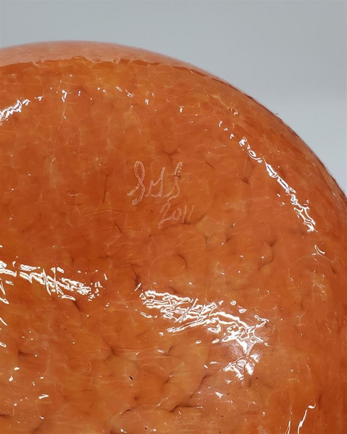 Blush colored pear signed in 2011, this piece measures 11.75" tall and 6" diameter.
