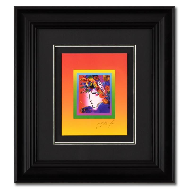 "Blushing Beauty on Blends" is a limited edition lithograph on paper by Peter Max, numbered 445/500 and hand signed by the artist. This piece comes framed. Includes Certificate of Authenticity from Peter Max Studios. Measures approximately 25" x 27.5" (frame), 10" x 13" (image).