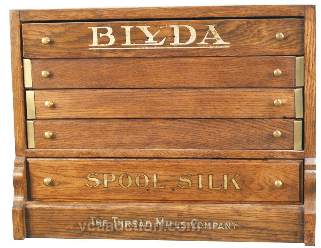 Blyda Spool Silk 4 Drawer Wood Cabinet "The Thread Mills Company" In Excellent Condition - 20" x 17" x 16" Tall