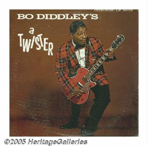 <B>"Bo Diddley's a Twister" Promo LP Checker 2982 Mono (1962).</B></I> White label promo copy of a strong roots-of-rock LP. Listening to this one shows how much influence Diddley had on such future bands as the Stones and the Who. Just excellent sound! Condition: VG++ (record)/VG+ (cover).