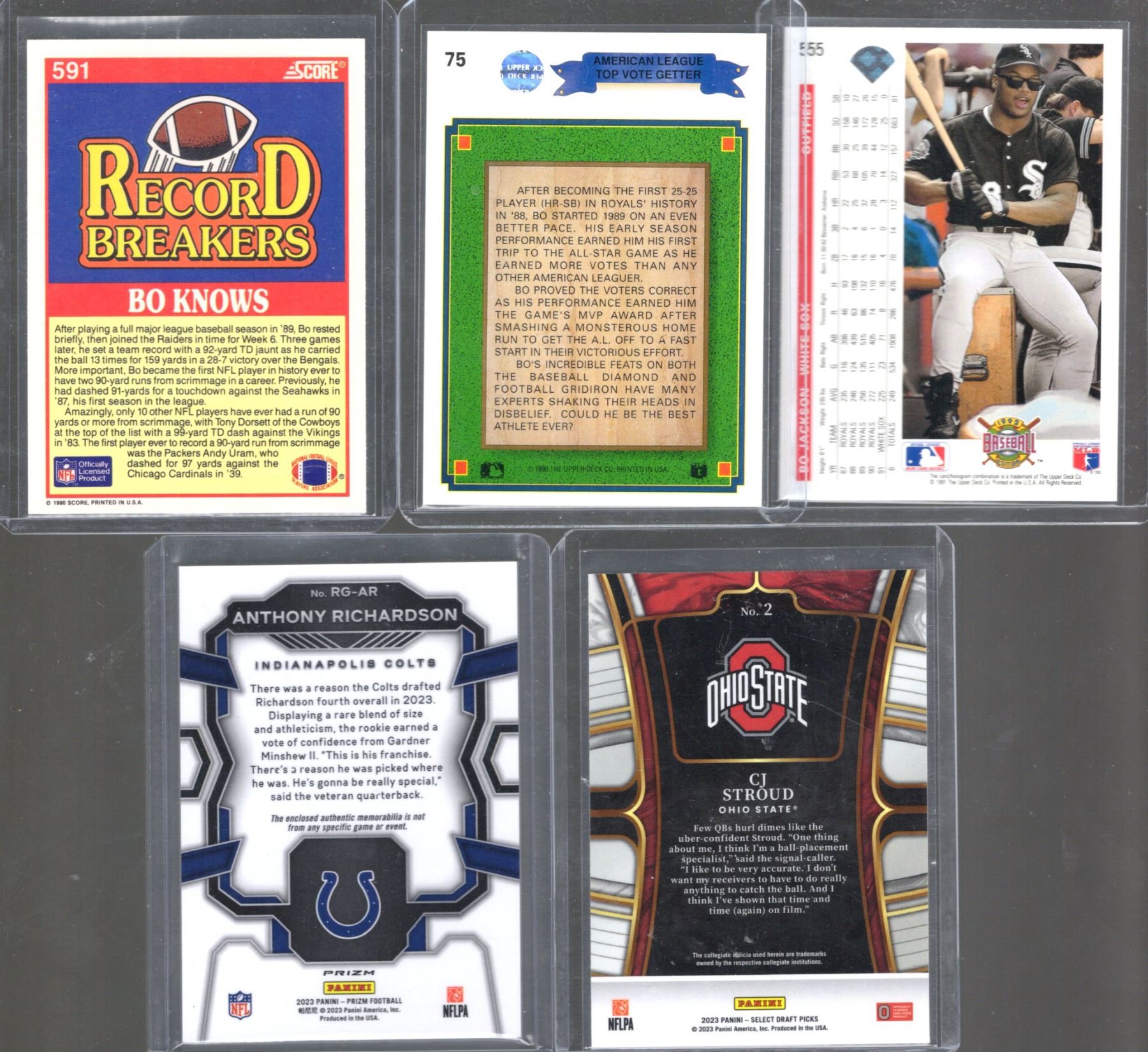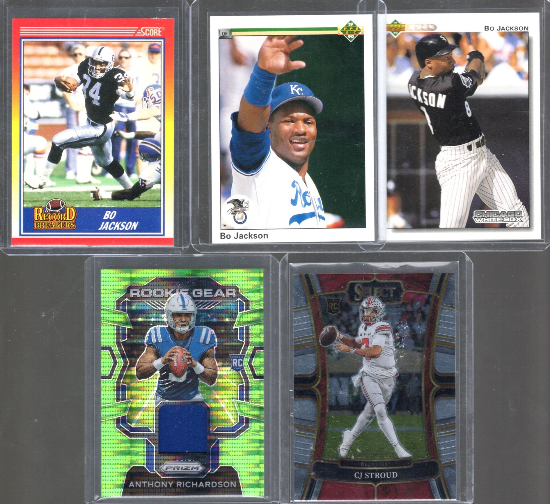 Bo Jackson, C.J. Stroud, & Anthony Richardson Neon Green Pulsar Patch Card