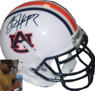 During his time playing for the Auburn Tigers football team, he ran for 4,303 career yards, which was the fourth best performance in SEC history. Jackson finished his career with an average of 6.6 yards per carry, which set the SEC record. In 1985, Jackson rushed for 1,786 yards, which was the second best single-season performance in SEC history. That year, he averaged 6.4 yards per rush, which at the time was the best single-season average in SEC history. For his performance in 1985, Jackson was awarded the Heisman Trophy. Bo Jackson has hand autographed this Auburn Tigers Authentic Schutt mini helmet (Signature in center of mini). Private Signing 2/16/2013 in Somerset, NJ. Photo of the Signing, Jackson Hologram and Certificate of Authenticity from Athlon Sports.