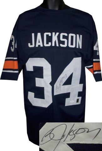 During his time playing for the Auburn Tigers football team, he ran for 4,303 career yards, which was the fourth best performance in SEC history. Jackson finished his career with an average of 6.6 yards per carry, which set the SEC record. In 1985, Jackson rushed for 1,786 yards, which was the second best single-season performance in SEC history. That year, he averaged 6.4 yards per rush, which at the time was the best single-season average in SEC history. For his performance in 1985, Jackson was awarded the Heisman Trophy. Bo Jackson has hand autographed this Auburn Tigers Navy Custom Jersey. JSA/Bo Jackson Holograms and Certificate of Authenticity.