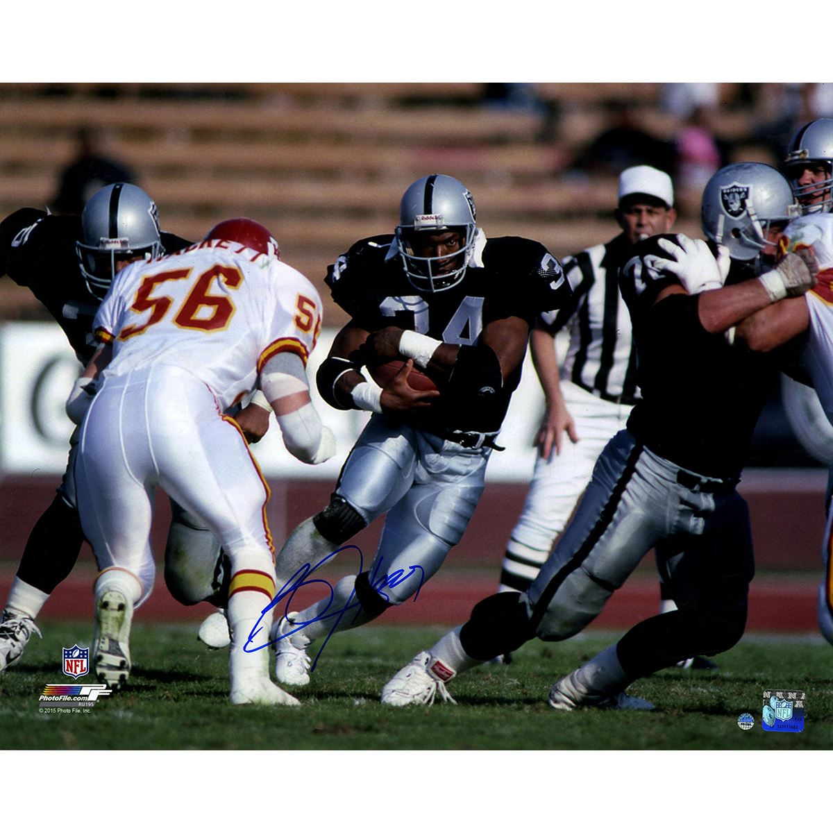 Bo Jackson Signed Rushing Against Chiefs Horizontal 16x20 Photo