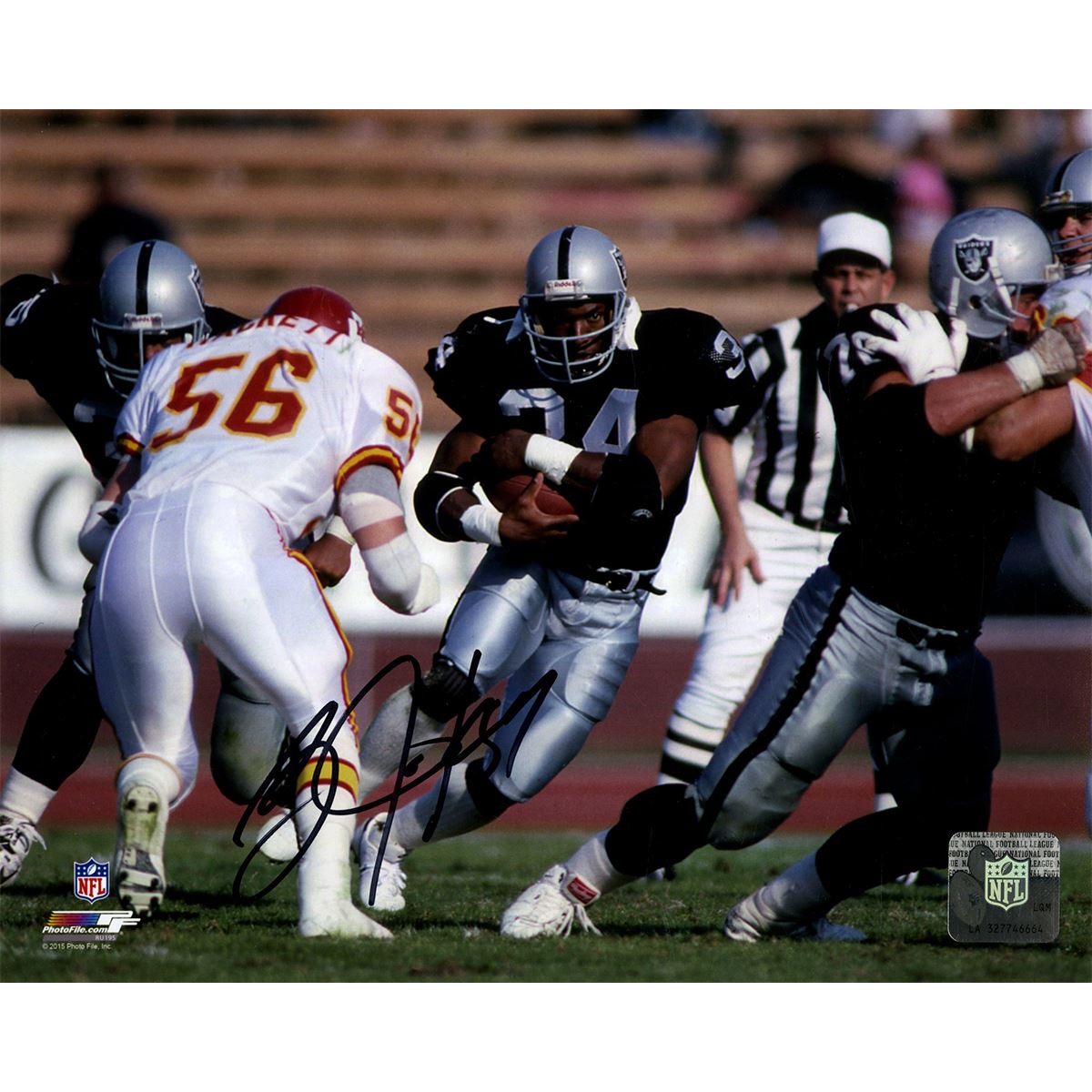 Bo Jackson Signed Rushing Against Chiefs Horizontal 8x10 Photo (Signed In Black)