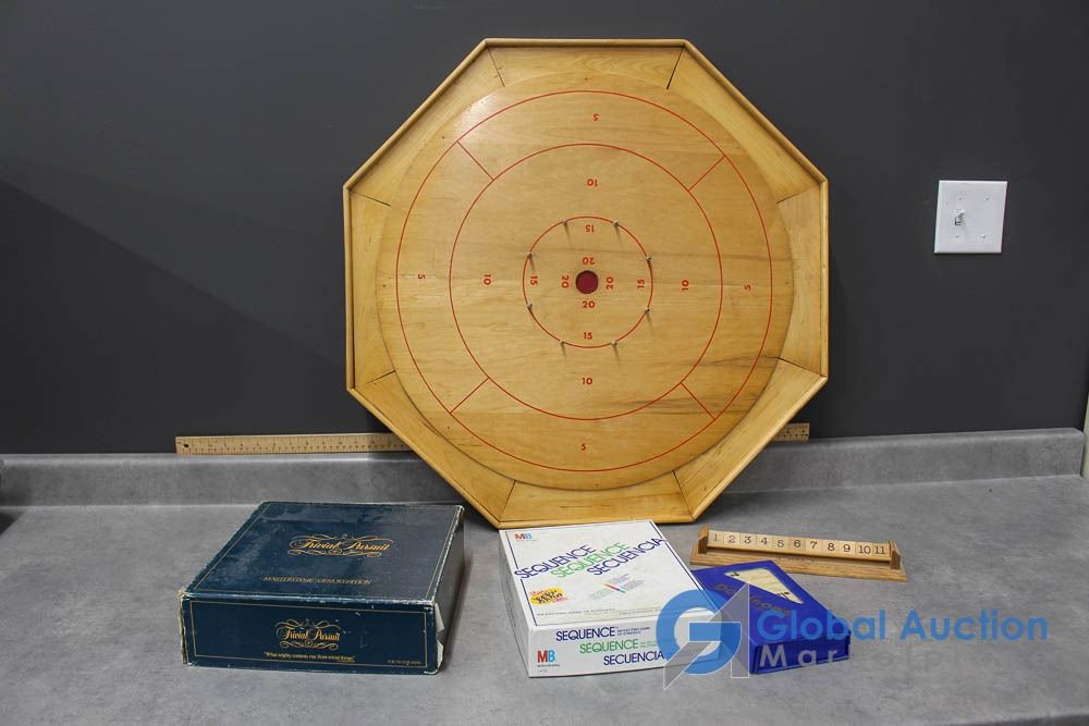 Board Games! - Wooden Crokinole Board, Trivial Pursuit, Sequence & Dominoes