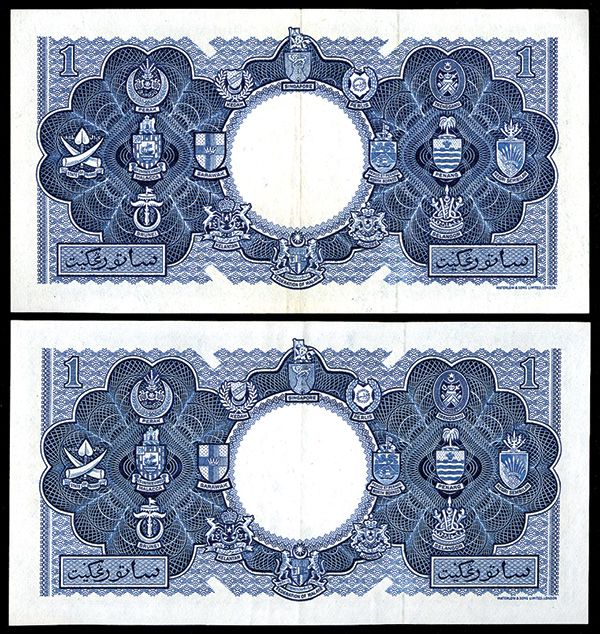 Malaya and British Borneo, 1953, $1, P-1a, Issued banknotes, Sequential Serial Numbers, both would grade Choice AU due to a very light vertical fold in the middle that keeps them from CU condition. W&S.
