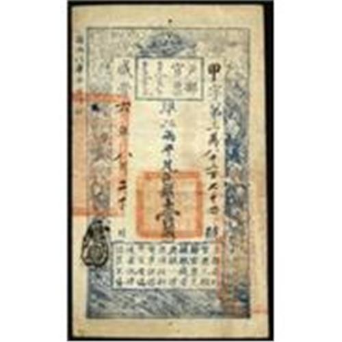 <style type="text/css"> body, td, th { font-family: Arial, Helvetica, sans-serif; font-size: 12px; color: #482424; margin: 0px; padding: 0px; } #header { background-image: url(http://www.bowersandmerena.com/ebay/images/template_v3_01.gif); clear: both; background-color: #590303; border-top-width: 2px; border-top-style: solid; border-top-color: #B38C4F; } #header #header_wrapper { height: 75px; clear: both; width: 800px; margin-right: auto; margin-left: auto; background-image: url(http://www.bowersandmerena.com/ebay/images/template_v3_03.gif); background-repeat: no-repeat; background-position: right; color: #F3EDCC; } #header #header_wrapper #header_logo { float: left; height: 75px; width: 444px; background-image: url(http://www.bowersandmerena.com/ebay/images/template_v3_02.gif); background-repeat: no-repeat; font-size: 10px; text-transform: capitalize; color: #B38C4F; } #header #header_wrapper #header_right { float: left; height: 75px; width: 356px; text-align: right; } #header #header_wrapper #header_right #headerLoginBtn { margin-bottom: 30px; } #header #header_wrapper #header_right input#txtSearch { color: #B49056; border: 1px solid #B49056; width: 175px; padding-top: 3px; padding-right: 3px; padding-bottom: 4px; padding-left: 3px; } #nav { height: 37px; background-image: url(http://www.bowersandmerena.com/ebay/images/template_v3_05.gif); clear: both; } #nav #nav_wrapper { height: 35px; width: 800px; margin-right: auto; margin-left: auto; border-left-width: 1px; border-left-style: solid; border-left-color: #B38C4F; } #nav #nav_wrapper a { padding-right: 15px; padding-left: 15px; border-right-width: 1px; border-right-style: solid; border-right-color: #B38C4F; height: 25px; padding-top: 10px; display: block; float: left; text-decoration: none; font-weight: bold; color: #5D0303; } #nav #nav_wrapper a:hover { color: #B38C4F; } #nav #nav_wrapper #search { float: right; padding-top: 7px; } #nav #nav_wrapper #search #txtSearch { font-family: Arial, Helvetica, sans-serif; font-size: 10px; text-transform: uppercase; color: #D2AE75; border: 1px solid #B38C4F; padding: 3px; } #content_bgd { background-image: url(http://www.bowersandmerena.com/ebay/images/template_v3_09.gif); background-repeat: repeat-y; background-position: center; padding-top: 15px; padding-bottom: 15px; background-color: #FBFBDB; } #content_wrapper { clear: both; height: auto; width: 800px; margin-right: auto; margin-left: auto; } .LotDetailWhite { line-height:normal; font-size:13px; font-family: arial,helvetica,sans-serif; color: White; font-weight: bold; } .LotDetailInformation { line-height:normal; font-size: 13px; font-family: arial,helvetica,sans-serif; } .LotDetailMessage { line-height:normal; font-size: 13px; font-family: arial,helvetica,sans-serif; color: red; } } tr.HeaderAuctionTitle td { color: #000000; font-weight: bold; padding: 2px; background-image: url(http://www.bowersandmerena.com/ebay/images/template_v3_05.gif); background-repeat: repeat-x; border-bottom-width: 1px; border-bottom-style: solid; border-bottom-color: #B38C4F; } table.AuctionSummary a, table.AuctionSummary a:link, table.AuctionSummary a:visited { color: #0000FF; text-decoration: none; } } td.tableHeaderLeft { border-left-width: 1px; border-left-style: solid; border-left-color: #B38C4F; } td.tableHeaderRight { border-right-width: 1px; border-right-style: solid; border-right-color: #B38C4F; } td.tableCellMiddle { border-left-width: 1px; border-left-style: solid; border-left-color: #B38C4F; border-right-width: 1px; border-right-style: solid; border-right-color: #B38C4F; padding: 5px; } tr.footer td { border-top-width: 1px; border-top-style: solid; border-top-color: #B38C4F; } </style> </head> <body> <div id="header"> <div id="header_wrapper"> <div id="header_logo"> </div> <div id="header_right"> </div> </div> </div> <div id="nav"> <div id="nav_wrapper"> <a href="http://www.bowersandmerena.com">Our eBayLive Auctions</a> <a href="#PaymentInfo">Payment Information</a> <a href="#ShippingInfo">Shipping Information</a> <a href="#About">About Bowers and Merena</a> </div> </div> <div id="content_bgd"> <div id="content_wrapper"> <table width="100%" border="0" cellpadding="5" cellspacing="0" class="AuctionSummary"> <tbody> <tr class="HeaderAuctionTitle" style="height: 25px;"> <td align="left" class="tableHeaderLeft" > </td> <td align="center" class="tableHeaderRight"> <span style="font-size: large;">Lot #10. China--Empire. Board of Revenue, Hu Pu Kuan P'iao, 1853-57 Issue.</span> </td> </tr> <tr> <td colspan="3" class="tableCellMiddle"> P-A9d, 1 Tael, (Year 6), 1856, VF+ to XF condition, clean and attractive example of this scarce note, 3 spindle or pin holes on top margin touching design.