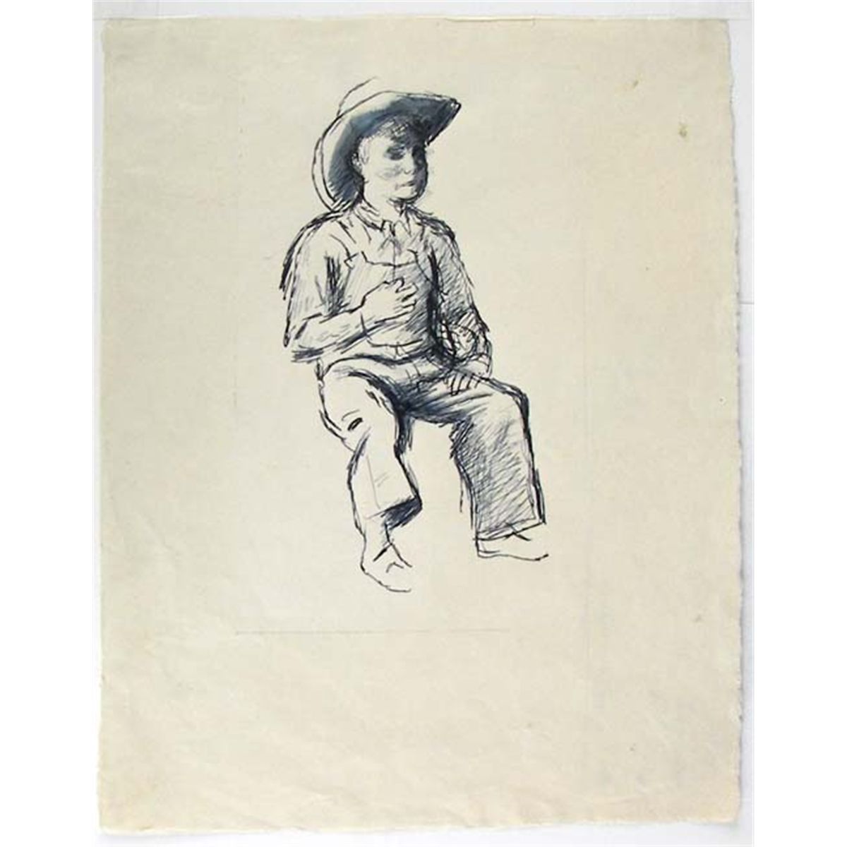 Boardman Robinson (1876-1952) (CO & NY), Broadmoor Art Academy Member, Pen & Ink, "The Little Ranch Hand", Image Size 7" x 4 1/2", Unsigned - Label Attached Verso "From the Artist's Estate, George Nix Gallery, Colorado Springs", Estimate: $200- $300