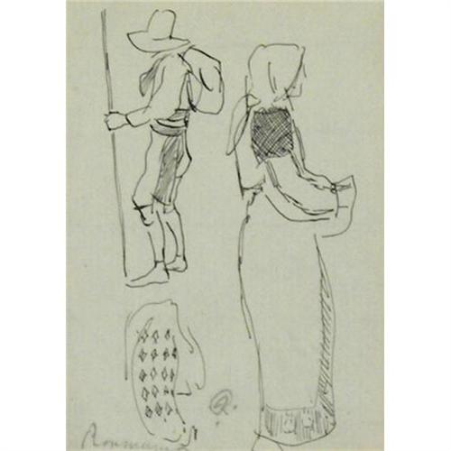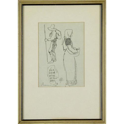 Boardman Robinson (1876-1952) Broadmoor Art Academy, Pen & Ink, 2 Figures, sight size 5 1/4" x 3 3/4", signed lower center