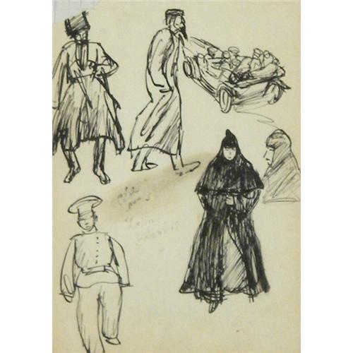 Boardman Robinson (1876-1952) Broadmoor Art Academy, Pen & Ink, "Poland", sight size 5 1/2" x 3 7/8", signed lower center