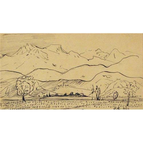Boardman Robinson (1876-1952) Broadmoor Art Academy, Pen & Ink, "Serbia", sight size 3 1/4" x 6 1/8", signed lower right