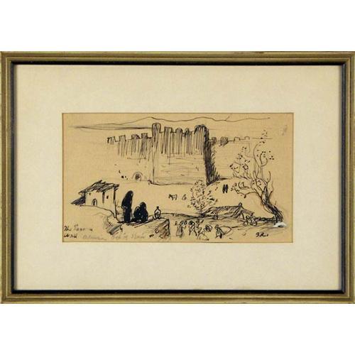 Boardman Robinson (1876-1952) Broadmoor Art Academy, Pen & Ink, "The Saracen Wall", 1915, sight size 3 5/8" x 6 3/8", signed lower right