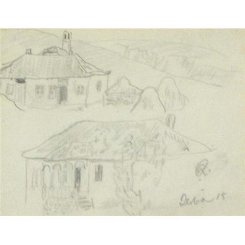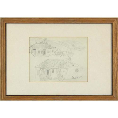 Boardman Robinson (1876-1952) Broadmoor Art Academy, Pencil, Townscape, 1915, sight size 3 7/8" x 4 7/8", signed lower right