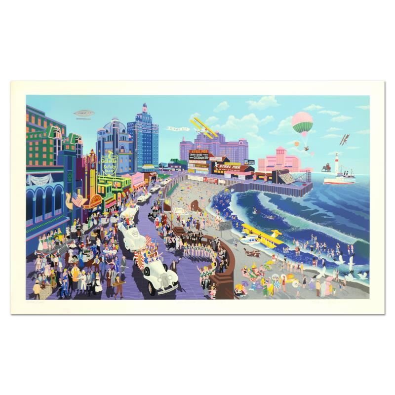 "Boardwalk of Atlantic City" is a limited edition serigraph on paper by Melanie Taylor Kent, numbered and hand signed by the artist. Includes Letter of Authenticity. Measures approx. 48.5" x 30.5" (with border), 44" x 26" (image). Please note: there is minor wear in the white border area that may be concealed when framed.