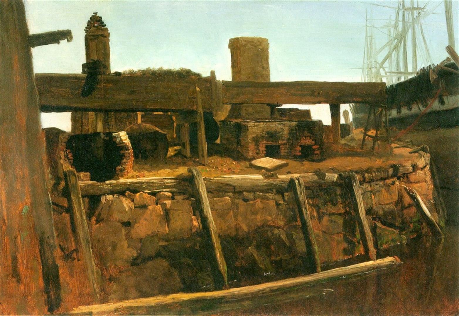 Artist: Albert Bierstadt (b. 1939) - Title: Boat at the Dock - Medium: Fine Art Giclee on Canvas - Image Size: Approximately 13.75 inches x 20 inches - Framed: Unframed on Unstretched Canvas - Biography: Bierstadt became internationally renowned for his beautiful and enormous paintings of the newly accessible American west, and his works found their way into public and private collections at staggeringly high prices for his time. His popularity and wealth rose to tremendous heights only to fade as the interest in the Boston School and impressionism turned public taste away from his highly detailed landscapes suffused with golden light. -