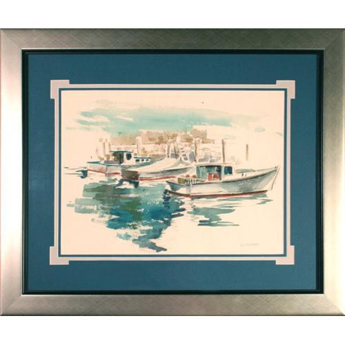 This peaceful boat scene was completed by the talented hands of artist R.W. MacIsaac. The intrinsic run of a watercolor brush lends itself well to the nature of this piece. The three boats are lined up at the dock in a supple, still manner in which evokes a calm, placid feeling that is further emphasized by the choice coloring. ...