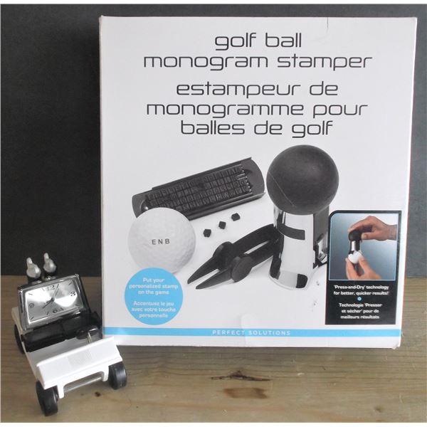 Golf Cart Desk Clock and Golf Ball Monogram Stamper Set1005 - Golf Cart Desk Clock and Golf Ball Monogram Stamper Set