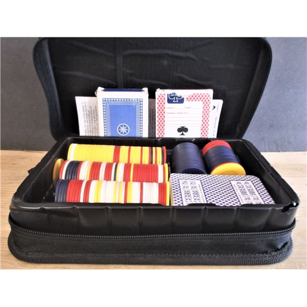 Poker Chips and Cards in Carrying Case - Plastic Chips1219 - Poker Chips and Cards in Carrying Case - Plastic Chips