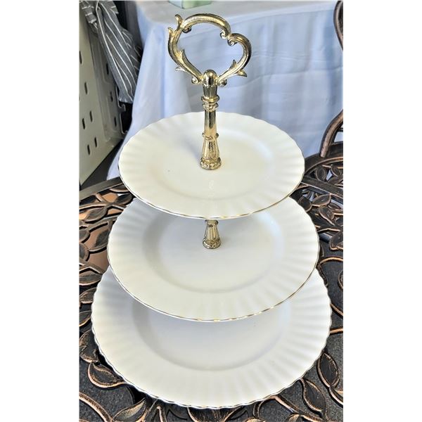 Royal Albert Plates for 3 Tiered Cake Plate, non-original hardware, Val D'Or Pattern1355 - Royal Albert Plates for 3 Tiered Cake Plate, non-original hardware, Val D'Or Pattern