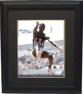 Bob Beamon is an American former track and field athlete, best known for his world record in the long jump at the Mexico Olympics in 1968 (29 1/2), which remained the world record for 22 years, 316 days until it was broken in 1991 by Mike Powell. This is the second longest holding of this record, as Jesse Owens held the record for 25 years, 1935–1960. Bob Beamon has hand signed this 16X20 Photo with 1968 Gold inscription from the 1968 Olympics in Mexico. Leaf Authentics Hologram and Certificate of Authenticity from Athlon Sports. Custom Black Mat and Premium Black Color Framed as shown.