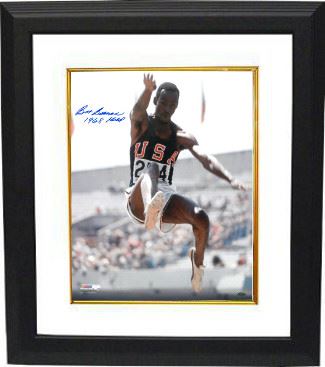 Bob Beamon is an American former track and field athlete, best known for his world record in the long jump at the Mexico Olympics in 1968 (29 1/2), which remained the world record for 22 years, 316 days until it was broken in 1991 by Mike Powell. This is the second longest holding of this record, as Jesse Owens held the record for 25 years, 1935–1960. Bob Beamon has hand signed this 16X20 Photo with 1968 Gold inscription from the 1968 Olympics in Mexico. Leaf Authentics Hologram and Certificate of Authenticity from Athlon Sports. Custom White Mat and Premium Black Color Framed as shown.